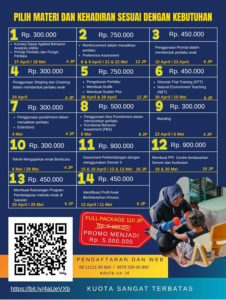 Pelatihan ABA (Applied Behavior Analysis) merupakan program pengembangan kompetensi yang dirancang untuk membekali peserta dengan pemahaman konseptual, keterampilan praktis, serta kemampuan profesional dalam menerapkan prinsip ABA secara sistematis, etis, dan berbasis data dalam layanan intervensi perilaku.